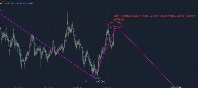 目前1小时周期局部破位1934一线后市,后续接连录得红三兵形态,多头动能十足!但目前1小时周期的成交量并未随行情新高而明显增长,呈背离;1小时周期的RSI并未随行情新高而创新高,呈顶背离,可看回落;各个周期的KDJ虽交叉向上指向看涨,但目前皆处于超买状态,后市需关注其超买状态的解除方式!短线有回落动能!