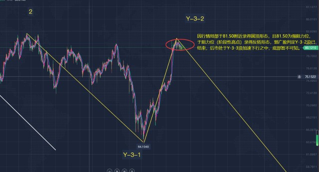 原油1小时周期局部呈81.50-79.50箱体震荡,且整体处于高开缺口下口81.50下方呈圆顶形态,后市可看下行,故建议高空为主,重点关注81.50这一点位的破位情况。目前行情处于震荡区间,其指标指向有限,但行情处于日线周期的81.40-72.40箱体震荡区间之内,同时处于小时线周期的81.50-79.50箱体震荡之中且处于高开缺口81.50下方,由此可见81.50为后市行情强阻,建议可于该点位附近跟进空单!