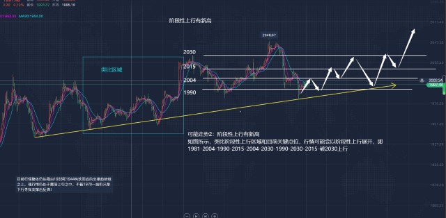 建议可于1990附近跟进多单,止损1982,目标看2000-2010-2020!