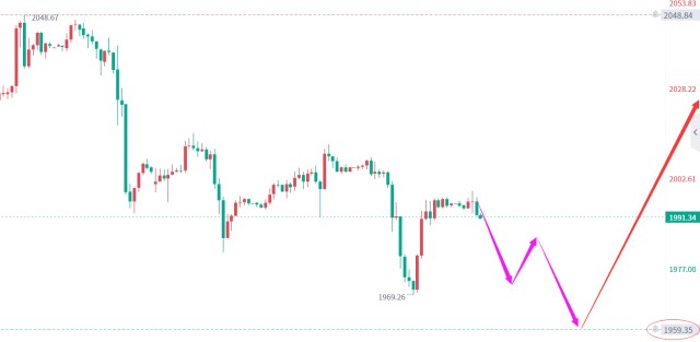分析完大趋势后回归小时线级别,本月创下2048的高点后黄金价格一路下行,K线图上都是快跌震荡慢涨,只有在周三出现深V反弹,目前1991到上面分析大趋势还有30余点的空间,所以本周尾还是一个主空思路,做多的话只是看一个反弹修正了。今日具体操作建议:上方1995-2000区间做空,止损2005,目标下看1980先;1980附近可以博一波短线回调多单到1993后再去参与空单看1960分析的支撑位后再去布局中长线多单。在文章上给出的策略不一定适合每一个人,但是秦氏金升会尽力帮您把单子处理好(官薇16836793)。