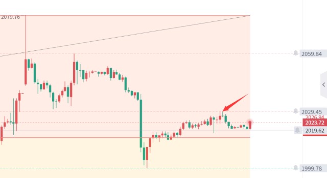 黄金走势分析:非农数据周在利率决议冲高100美金,回落80美金的走势后落下帷幕,整体的波幅超180个点,从盘面上大致可以看出一波标准的冲高回落,目前四小时图上可以看出,黄金周二突破上一个密集震荡区创下2079的再一高点后,二次反弹位置在2059,周五下探止跌位置是2000关口,目前能够给出的点位是以2031为损,往下推进场点位再2028-2022区间,下方先看2000关口能否破位;
