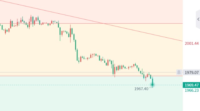 黄金走势分析:美盘初请数据利空,黄金顺利下破1969的位置,虽然有小幅反弹,但是低点也是在不断刷新,我们下午1975追空有效,目前主要支撑在1959这里,此位置秦氏金升不想再用过多文字去描述,但是在这种极弱的情况下,也许1959也会被破掉。再回归这波追空来讲,为什么上午老秦是看震荡,下午选择了追空呢,主要是早盘分析的时候金价是向上运行的,到了欧盘,黄金一路下行,6根阴K且破位周三的低点,所以果断在1975附近追空。针对美盘,操作上还是建议将空单做到底,手中持有空单继续下看,空仓的可等待金价反弹再度进空。