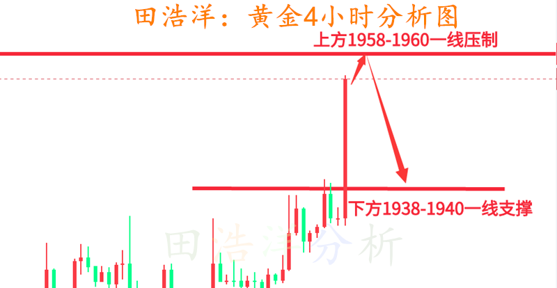 每一个早晨,都是一个愉快的邀请,每一天的行情,都是一个新的种子,在遥远的城市,陌生的地方,也有可能未曾见过山与海。但是在市场的波澜中尽是奇山异海的美景,值得高兴的是今天还能在市场中见到各位,然而空集是最容易被遗忘的子集,最朴素的生活,与最遥远的梦想,即使今天天寒地冻,起航的热血之心依然沸腾。 目前黄金已经突破前期高点1938-1940强压制,而随着CPI数据的公布上方1942-1945的分割压制也已强势突破,而目前4小时指标macd金叉放量运行,灵动指标sto勾头向上修复,所以4小时当前还是属于一个强势向上的走势!整体结合日线和4小时线大方向来看,上方进一步的压制则是在1964一线压制! 从4小时分析图来看,上方短期重点关注1960-1964一线阻力,下方短期重点关注1938-1940一线支撑,各位朋友一定要跟上节奏。要控制好仓位及止损问题、严格设止损,切勿抗单操作。近期市场动荡幅度较大,机会与风险并存,控制风险再博收益。耐心等待关键点位进场具体操作策略我会在盘中提示,及时关注。 黄金操作策略: 1、黄金反弹1958-1960附近做空,止损1966,目标1945-1940附近,破位看1935一线; 文/田浩洋(VX:thy7818)专业国际市场点评,针对实际市场参与者,考虑到部分市场窗口对于实盘交易具有一定的时效性可关注笔者,从而能够选择合适的策略进行操作。对黄金、原油、白银等大宗商品有深入的研究,如果你做单不顺或投资经常资金缩水,那么你可以关注田浩洋本人。
