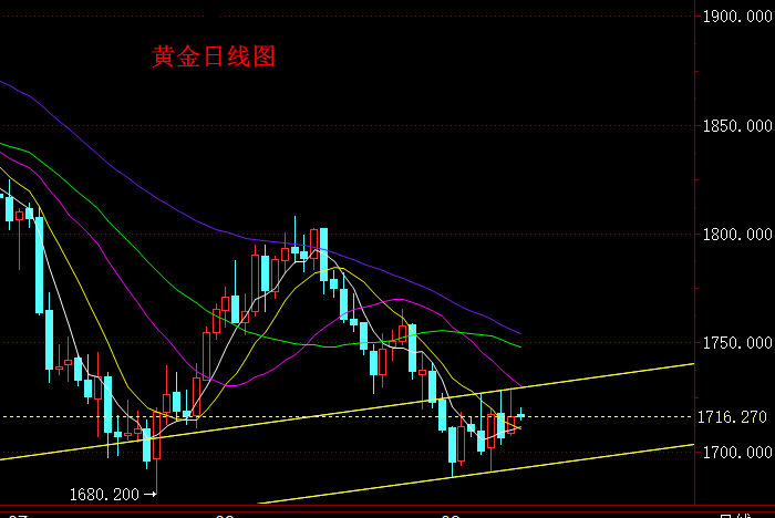 日内操作上,下方建议先关注上周五低点1711附近支撑,这里也是日线MA5和MA10均线目前位置;其次建议关注1706附近支撑,这里是黄金自1691上涨1729的黄金分割0.618位置;若行情继续下跌,建议进一步关注1699、1694、1680附近支撑。