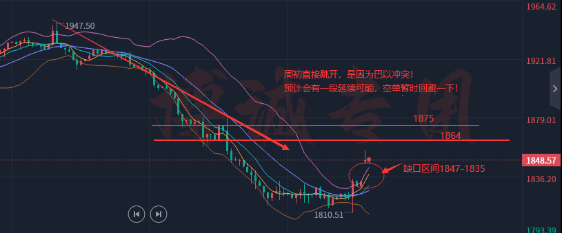 个人看惯性也有两到三天涨幅,至于什么时候回补1835缺口,我们只能说行情避险消退或许有,要知道3月银行破产倒闭的1867缺口,是震荡上涨7个月才有的下跌回补,当然本次的事情,避险持续没有那么长,毕竟美联储货币政策不会支持,周初消息数据很小,所以市场都是避险情绪。
