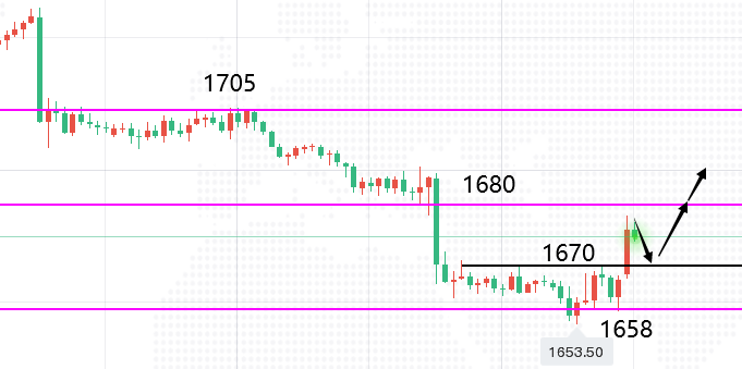 (下周黄金操作思路)建议1670附近做多,止损1660,目标看1687-1700;目前手上有高位多单或者低位空单,不知道如何处理或者近期出现严重亏损可添加蒋福财老师微信【JFC5458】我会给予最大的帮助。