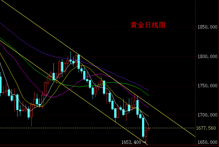 日内操作上,下方建议先关注1670附近,这里是上周五尾盘冲高1680后回落的低点位置附近,也是目前四小时均线支撑位置附近;其次建议关注1660-1657附近支撑,这里是上周五美盘回落的低点区域;若行情继续下跌,建议进一步关注1650/1649附近支撑。