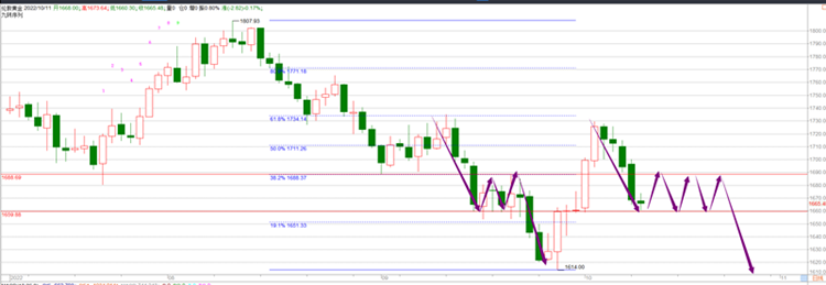 昨日周一黄金最终是自开盘高点1700附近开始阴跌,截止到目前为止也是触及至1660关键支撑位置。 1660这里是我昨日文章中就给大家提到过的,我提前就给你们说过618位置1685这里跌破,1670-75这里也守不住的,最终是要去1660这里的。 只不过昨日整体并没有给到太多反弹做空的机会,在美盘1677-78附近我也是直接果断通知实盘学员进场做空,下看1660支撑。 目前空单已经是止盈离场,包括我自己在1720的空单也是在1660附近获利了结。 其实我空单离场并不是说空头结束了,只是我明白1660这里肯定是会来回反复整顿的,真正的风险其实在周四的CPI数据。 如果我要是坐庄的话,我完全可以在1660这里拉起一波反弹趋势,诱你们在高位做多进场,然后CPI数据出炉再次打下来跌破1660这样的剧本。 目前cpi预期是8.1%,而美债收益率在4.0%附近,这就意味着目前实际利率是-4.1%。9月份CPI数据是8.3%,实际利率在-4.6%,那么就意味目前如果按照8.1%的预期,那么利率是一个比较好的一个状态,这样无疑更加提振美元指数,非美货币以及金银可能还会迎来下跌。 如果想要cpi利多金银,那么周四公布的数据最低也要达到8.8%左右,才能让非美货币涨起来。 还有一种可能就是目前在cpi出炉前,黄金来一波拉伸,直接把美债收益率降低至3.5-3.6%,那么到时候CPI就可能不需要太高就能让金银上涨。 其实回顾最近三个月来看,7-8-9通胀都是一步步在降低,而且实际利率也是在慢慢增长。 所以本周四的cpi想要打压美元,从而利多金银是比较难的,很有可能cpi出炉就会像前面几次一样,跳水出新低破位。 但是,目前我知道的在1660这里有支撑,目前我不清楚行情会怎么走,如果说在CPI出炉前黄金就跌破1660这里,那么后面数据公布后会加速下跌,破位1614这里低点。 但是,如果这几天维持在1660上方整顿,那么你也千万不要把1660这里当作是一个底部,可能市场等待的就是数据出炉再来破位1660这里支撑。