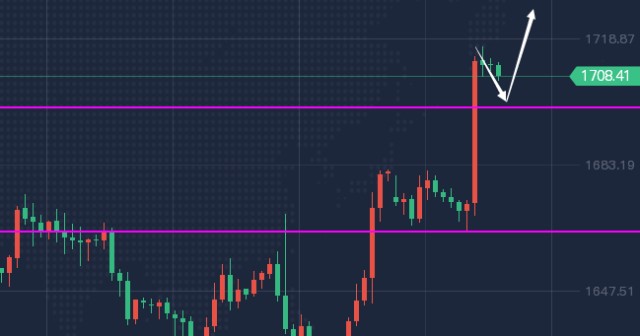 周二黄金价格总体呈现大幅上涨的状态,当日价格最高于1716位置,最低下跌至1664位置,晚间收盘于1712位置。回顾周二市场表现,早间开盘后价格先延续震荡,欧盘开盘后价格企稳开启震荡上涨,美盘前7点中四小时级别收盘状态看,价格刺破四小时支撑后有再度飙升的表现,并且欧盘持续上涨,所以晚间价格出现大幅上涨的表现,日线价格大阳收尾,从目前看价格再次突破关键阻力,总体还是维持多,上方短期我们需要关注1730得失,下方目前重点关注1700-1692区域支撑,另外昨日低点位置也是目前日线支撑,操作上今日当价格触及至1700附近即可布局多单,上方持续关注1717-1730阻力,如若市场强势则继续关注1740-50区域;操作思路上蒋福财建议黄金低多看涨为主;交易需要理智,需要专业指引,我每天18小时在线指导,如果被套,我会根据你的进场点位、资金大小、合理的解套【微信:JFC5458、公众号:蒋福财】免费为你解套解难。