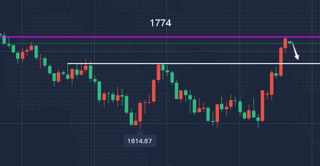上周黄金大涨110美金,本周还这么涨,主力都受不了,本周是黄金发生转向的关键节点。今日黄金跳空低开10美金。作为分析人,要第一时间分析出黄金的方向在哪里,而不是大家都看出黄金要大涨了,分析师说黄金多头趋势。现在众多分析是都认为黄金还会继续涨,我则判断黄金本周是回调周。黄金 白银现在都涨至上方深度套牢去,需要洗盘再次拉升。黄金虽然站稳日线中轨,但距离中轨较远,俗称被离度过大,需要回归。今日黄金跳空低开,说明1770一线压力还是蛮大的,本周主做空单。今日黄金操作上蒋福财建议高空为主;上方关注1770阻力;