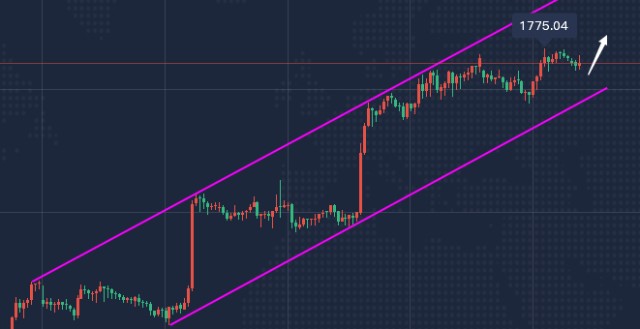 黄金近期承压1675高位回落,三探1615低点再度反弹回升,并且10月非农也是助涨黄金强势拉升,成功突破1675高点与1700大关。该涨的还是涨了,随后受美国CPI数据刺激,黄金迎来连续性的爆发式上涨,瞬间拉升突破1735前高位置,多头势如破竹奔向1770关口,新高不断被刷新,涨势尤为惊人。目前月线大阳直线拉升,从而终结七连阴回落格局,完全属于逆势上涨。周线是完全明确1615底部信号,大阳直接拉升了100美金,并且是满阳收尾,多头动能十足,MA5—MA10均线底部开始金叉上行。日线更是强的不言而喻,就一个星期的时间,涨幅已经高达近150美金;连续巨阳放量拉升成功打开布林上轨空间,MA5—MA10均线维持金叉上行,MACD红柱能放量状态。