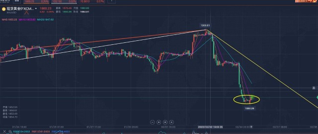 黄金1小时周期整体于1959附近录得圆顶塔形顶部形态后,后续再次录得下降三法形态破位局支撑区间1880-1884,下行局面打开,现局部于阻力位1880附近录得圆顶形态,后市整体仍可继续看下行!4小时周期于1959附近录得黄昏之星形态后,后再次录得下降三法形态,且行情仍处于4小时周期的中轨之下,大空头趋势仍在,后市可继续看下行。日线周期收看跌吞没形态后,后再次录得大阴破位中轨,整体空头动能十足,后市仍可继续维持高空策略。上方关注1880-1910阻力,下方关注1850-1830支撑!