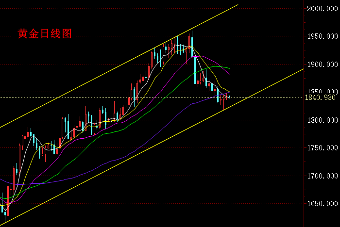 下方短线建议先关注1837、1829附近支撑,1837附近是昨天的低点位置,1829附近是黄金自1818上涨1827上方的黄金分割0.618位置;若行情继续下跌,建议进一步关注1824/1823附近支撑。
